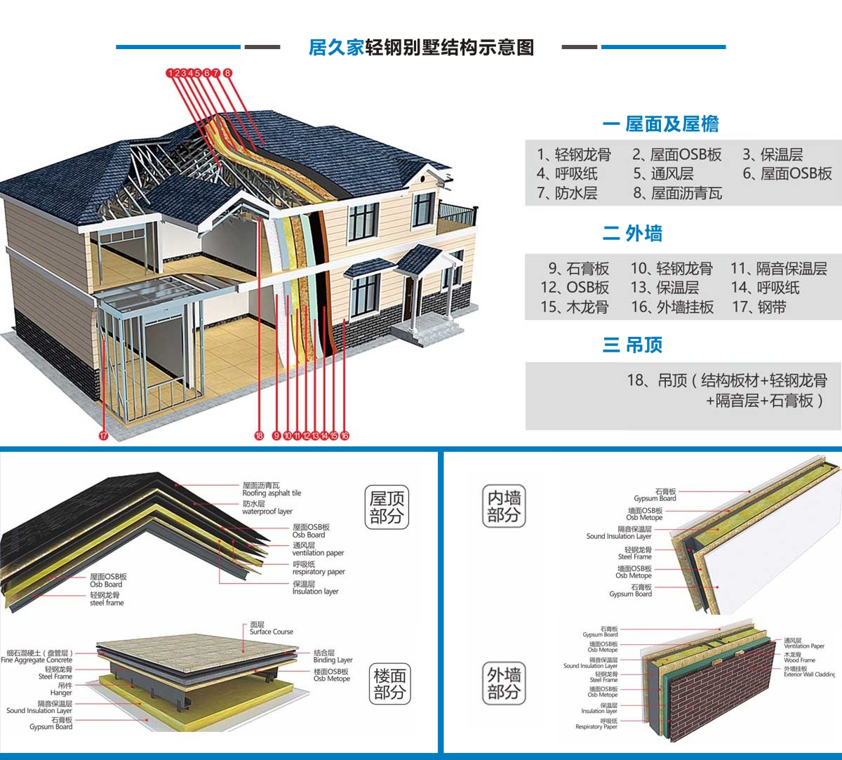居久家輕鋼別墅隸屬于四川萬建城建筑工程有限公司,集科研、設(shè)計、咨詢、加工、生產(chǎn)安裝為一體。一直致力于新型輕鋼結(jié)構(gòu)房屋的研究、開發(fā)和應(yīng)用,倡導(dǎo)房屋建筑的設(shè)計和應(yīng)用在標準化、模塊化、通用化、規(guī)模化生產(chǎn)的同時,實現(xiàn)人居環(huán)境的個性化、人性化、以及健康和舒適。 公司目前引進具有國內(nèi)先進水平輕鋼結(jié)構(gòu)房屋建筑技術(shù)和生產(chǎn)線,標準化、精細化和定制化設(shè)計、制造、安裝輕鋼結(jié)構(gòu)房屋。不僅能夠提供風(fēng)格各異的別墅建筑,同樣能夠提供行業(yè)標準的輕鋼樓宇建筑及建筑群。居久家裝配式房屋技術(shù)體系是高效節(jié)能型綠色建筑體系,各項建筑物理性能卓越,處于業(yè)內(nèi)先進水平,能夠為客戶提供全程模塊化綠色建筑集成解決方案。